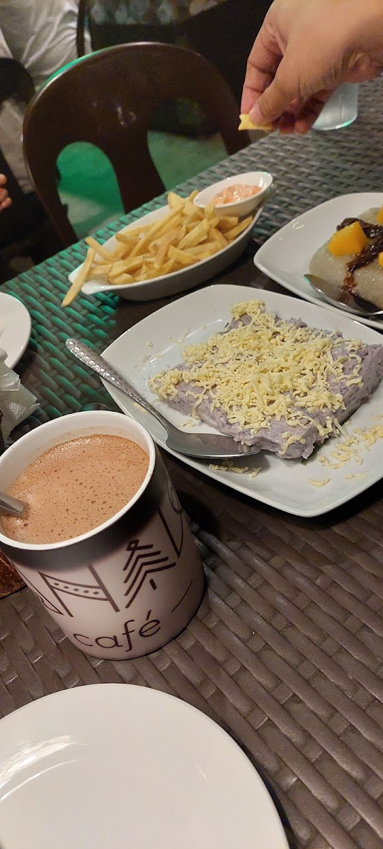 The café’s ambiance strikes a balance between cozy and invigorating, surrounded by lush greenery that enhances the tranquil setting. Picture this: warm breezes rustling through the trees, the scent of freshly brewed coffee filling the air, and the sound of nature's melody serving as a backdrop. On a chilly, foggy afternoon, you can enjoy a comforting cup of their rich sikwate (hot chocolate), masterfully prepared to envelop you in warmth and richness.